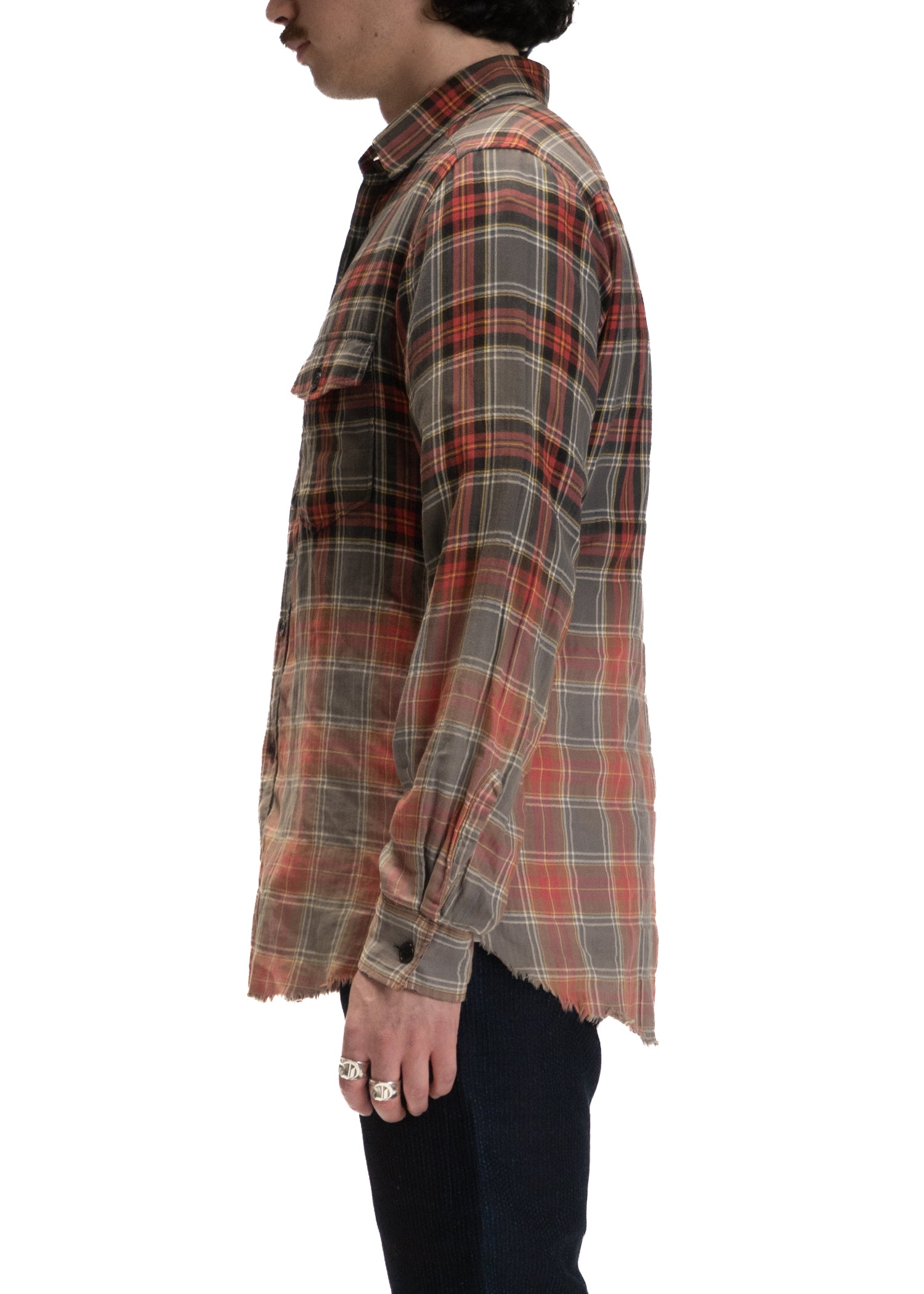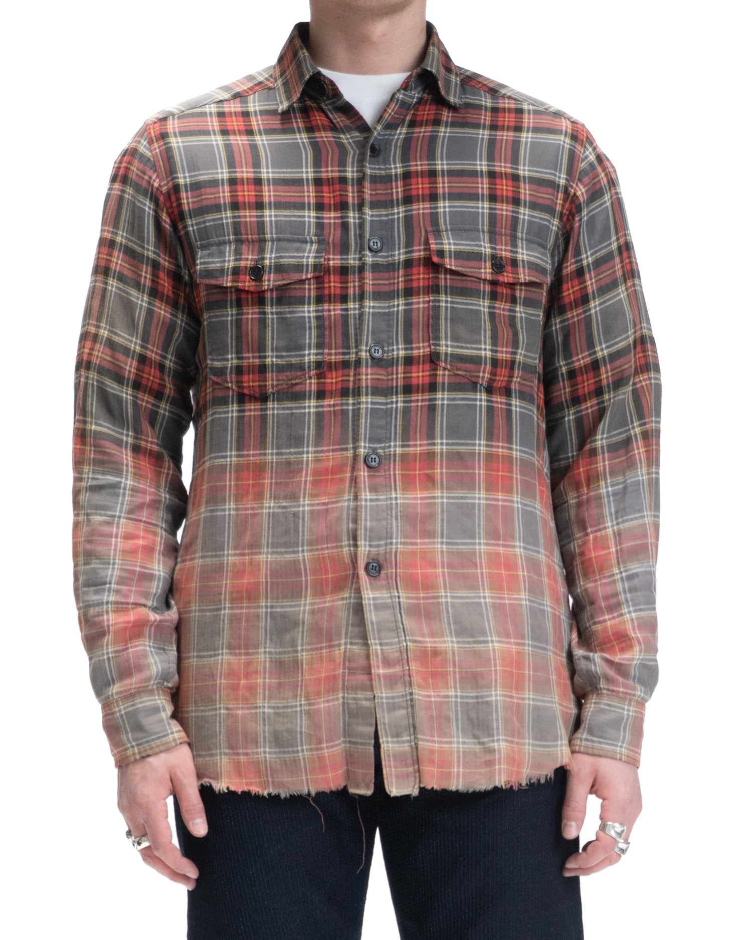 SS16 Surf Sound Distressed Flannel ShirtSaint Laurent ParisSize: MediumCondition: UsedMeasurements (Approximation): Shoulder: 19 inchesChest: 22 inchesLength: 31 inchesSleeve Length: 22 inches