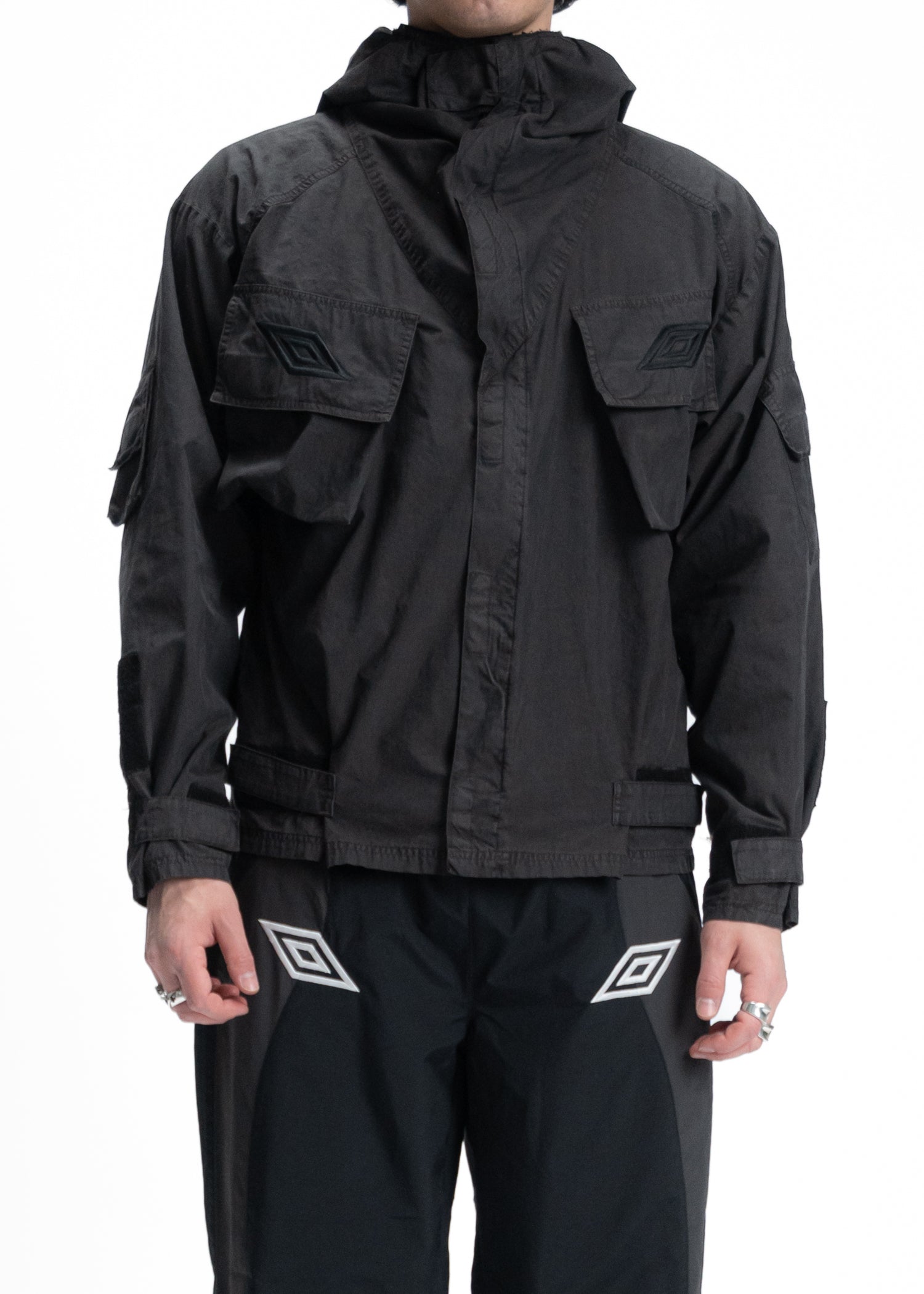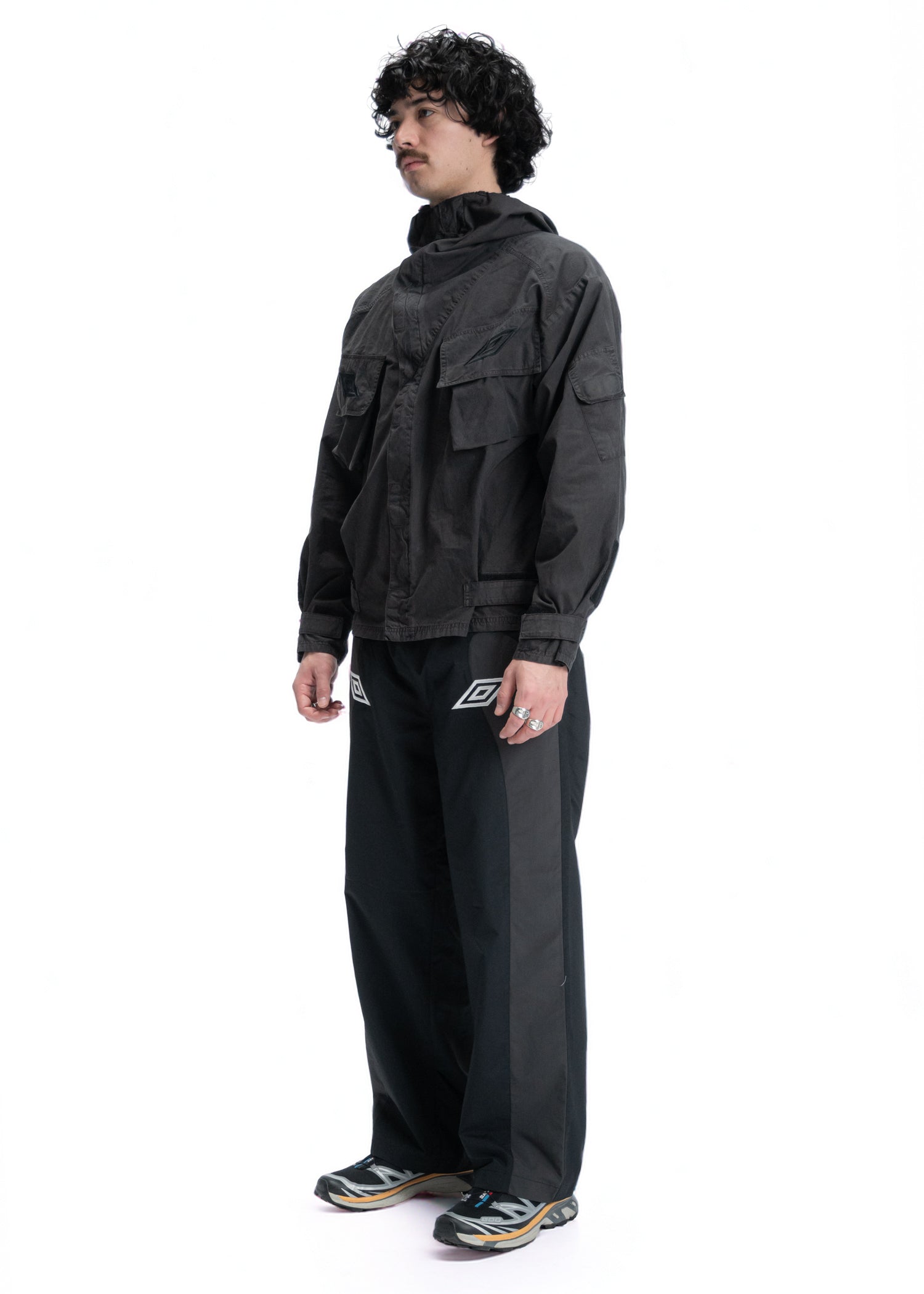 This collection explores physicality through a shared vocabulary of sport and subculture. Drawing on terms such as defence, offence, volume, and noise, it highlights the parallels between athletic performance and the raw energy of British terrace and sound-driven movements. Rooted in British heritage and uniform, the pieces merge functional influences with the off-pitch attitude.